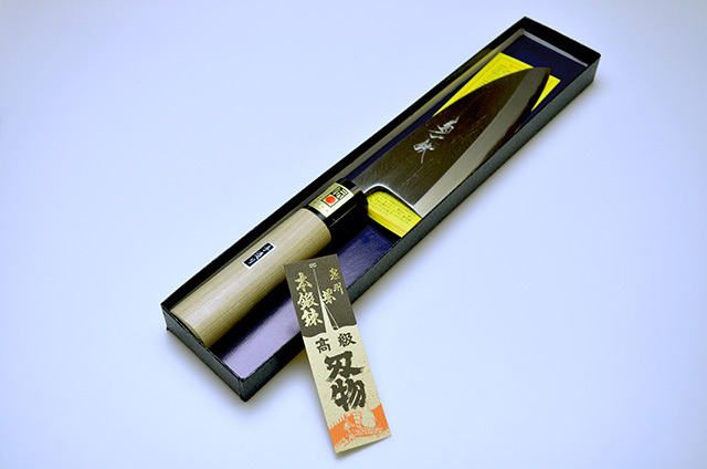 日ごろから錆びないように、使った後は洗剤で軽く洗い、熱い湯でさっと流し、乾いた布で拭いてから包丁差しに立ててしまってください。