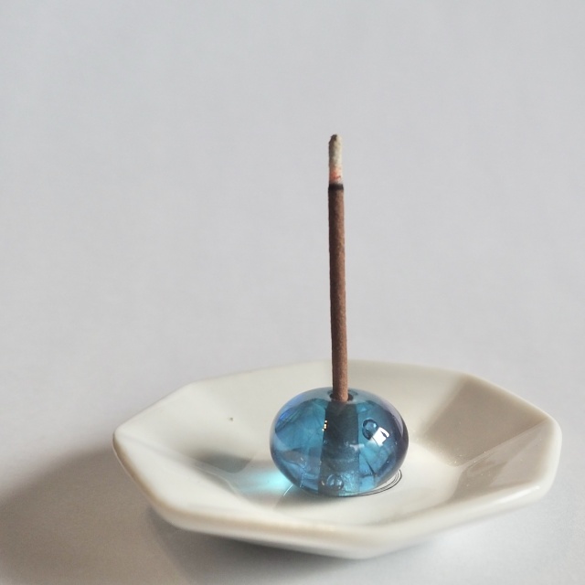 - ガラスお香立て × 1点(手作りのため一点ごとに表情が異なります)箱付き