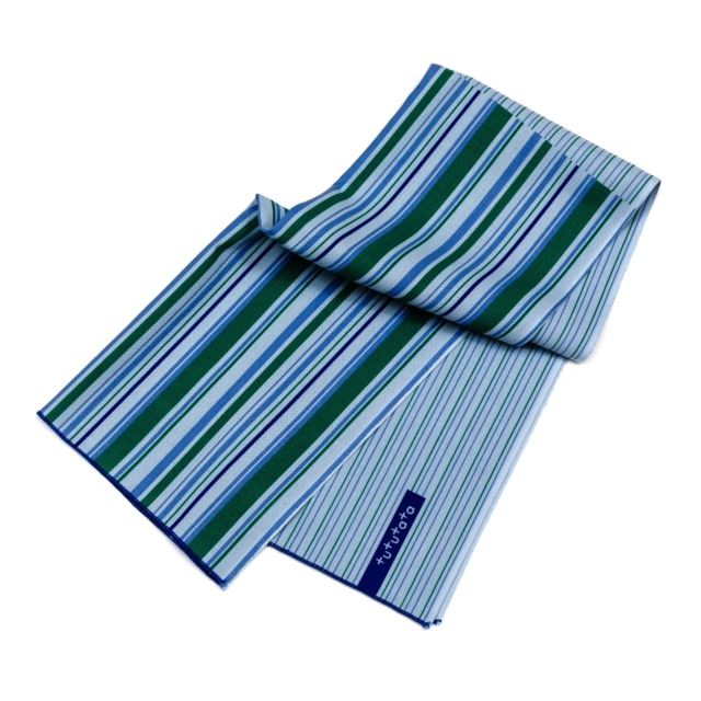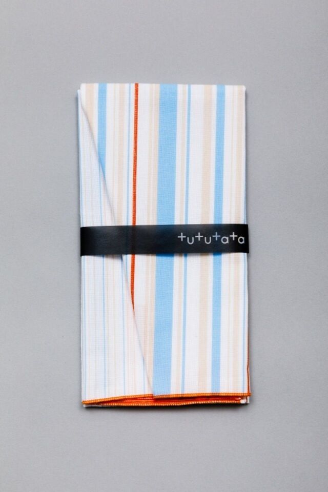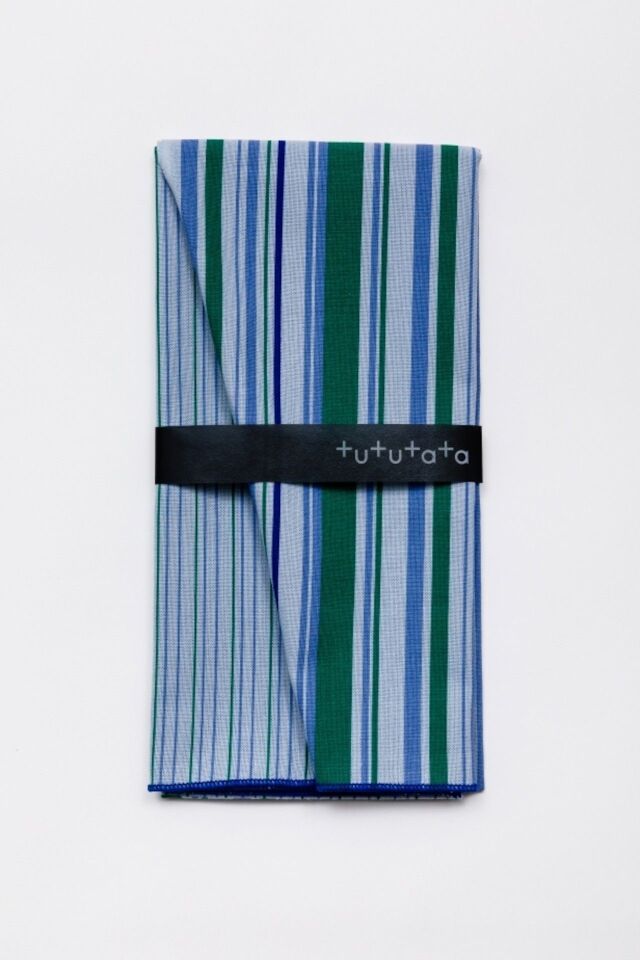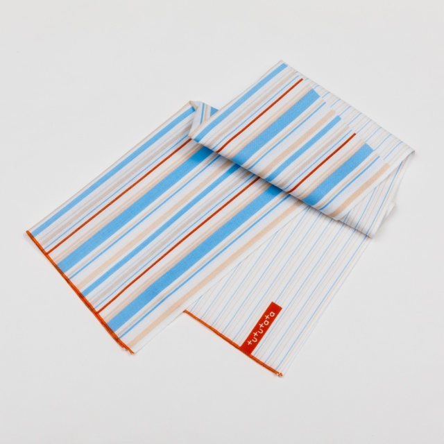 1枚で2つのストライプを楽しめるシンプルで使い勝手のいい手ぬぐい。半分に折って、食事の時のおしゃれ着の汚れ防止に。どちらの柄を使うかはその時の気分で。ビジネスでもオフタイムでも使える、男性にもおすすめの色柄です。
