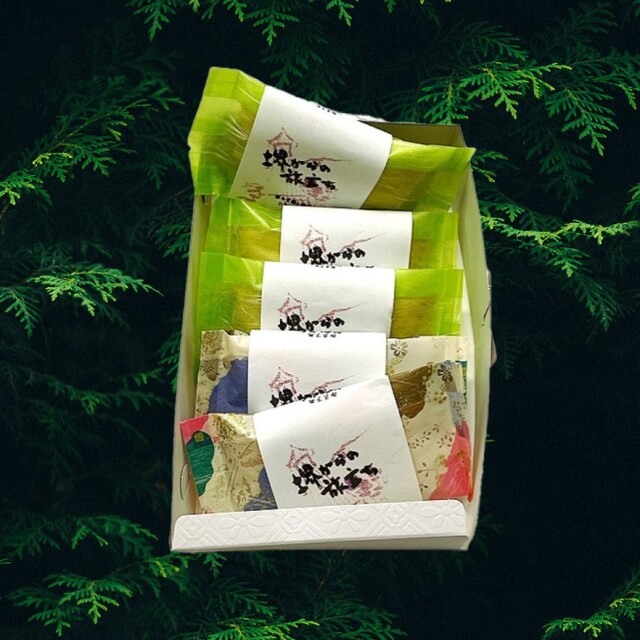 林檎餡・粒餡の2種類をしっとりとしたカステラ生地で半月の形に包んだ焼き菓子です。