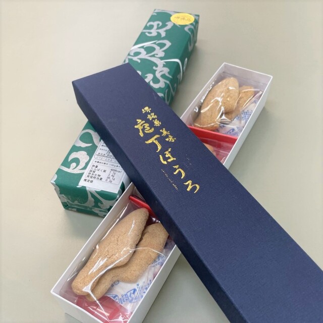 その庖丁の形状をそのまま模したユニークなそばぼうろ。