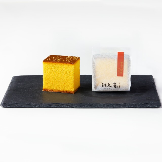 原材料: 鶏卵(国産)・砂糖・小麦粉・水あめ・蜂蜜・抹茶・植物性油脂/金粉